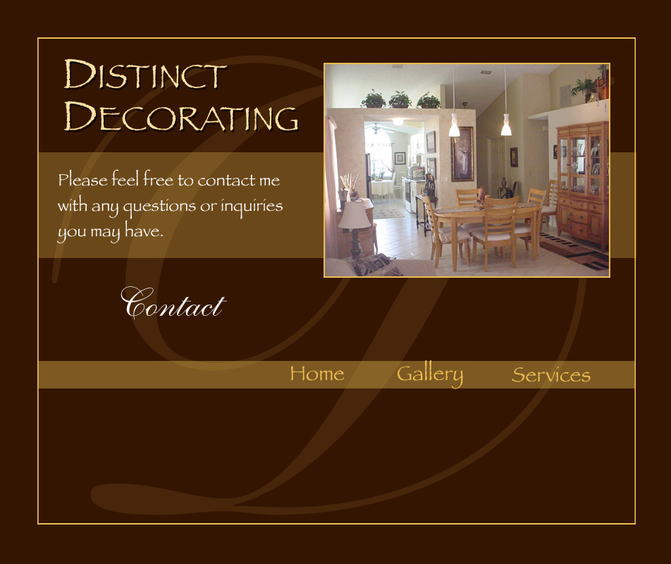 All images, designs, concepts and content ©2007-2008 Distinct Decorating. Site design by Shane Butzow Art & Design